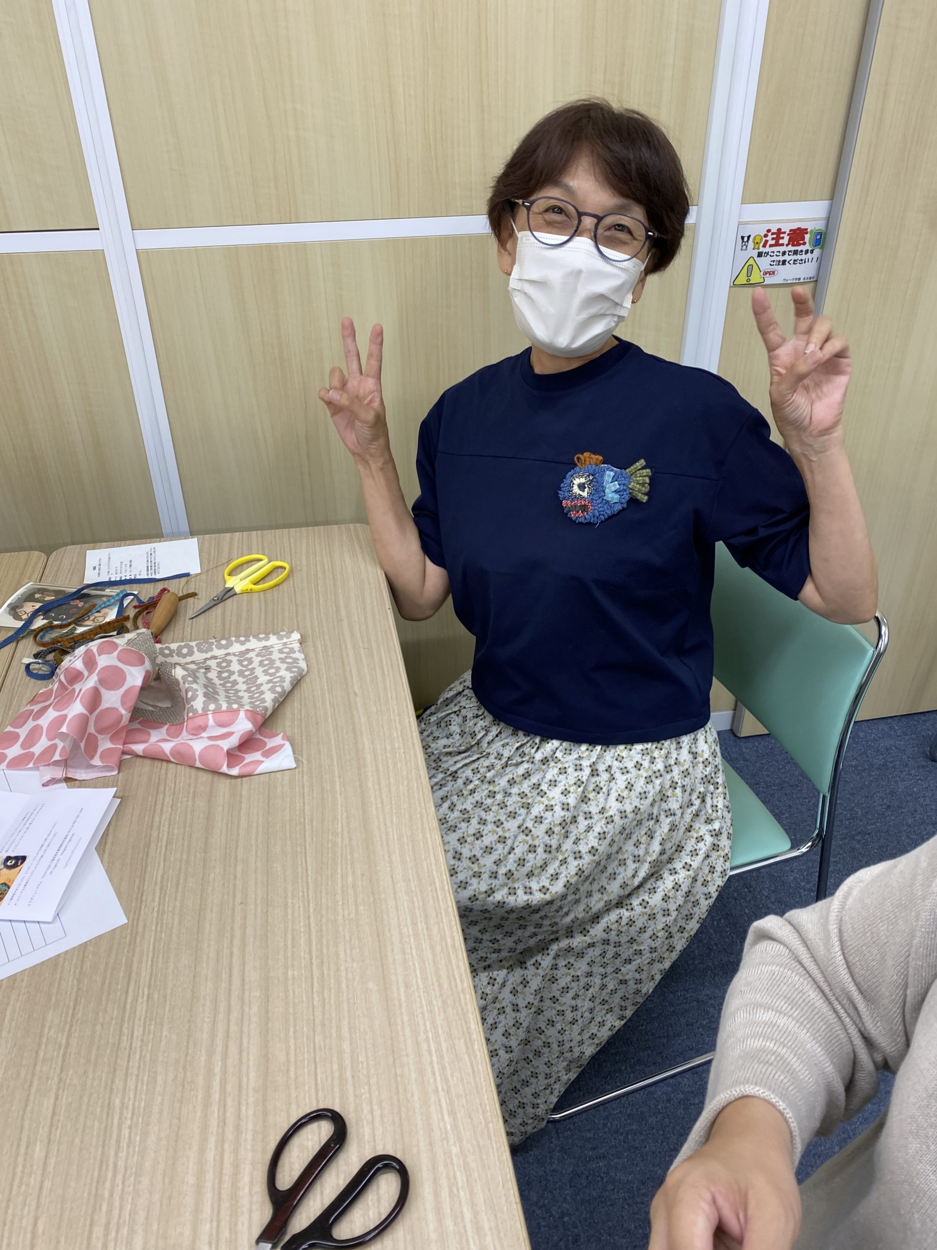 ヴォーグ学園名古屋校でフックドラグの「魚のブローチ」と「ブタさんウサギさんポシェット」を作りました。